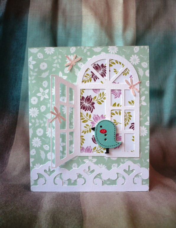 Открытка ручной работы. Скрапбумага, вырубка, декоративные элементы. Размер 9,5х11 см