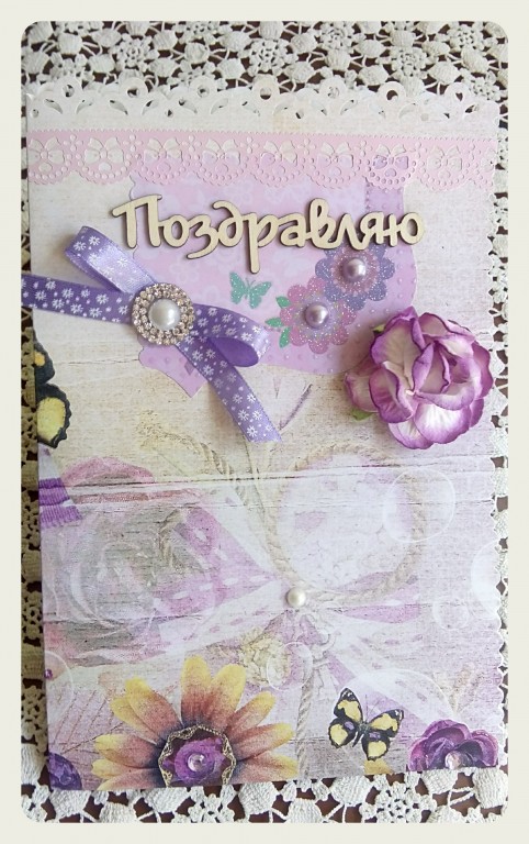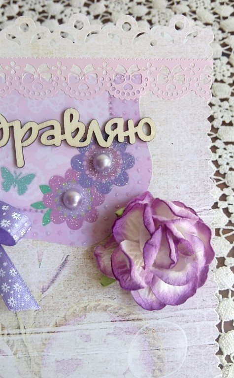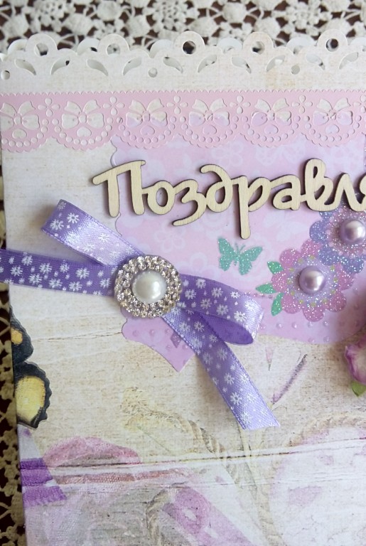Открытка ручной работы ко дню рождения или другому празднику для романтичной, нежной девушки.