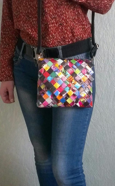 Яркая сумочка, обратит на себя внимания. Прочная, закрывается на магнитною кнопку.