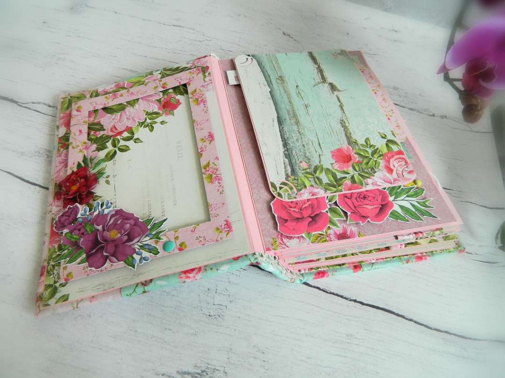* 7 разворотов, 1й начинается рамкой для фото, 7й заканчивается объемным карманом;