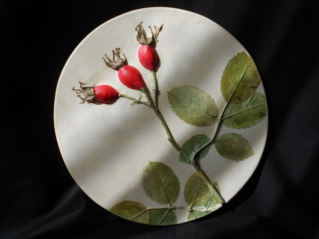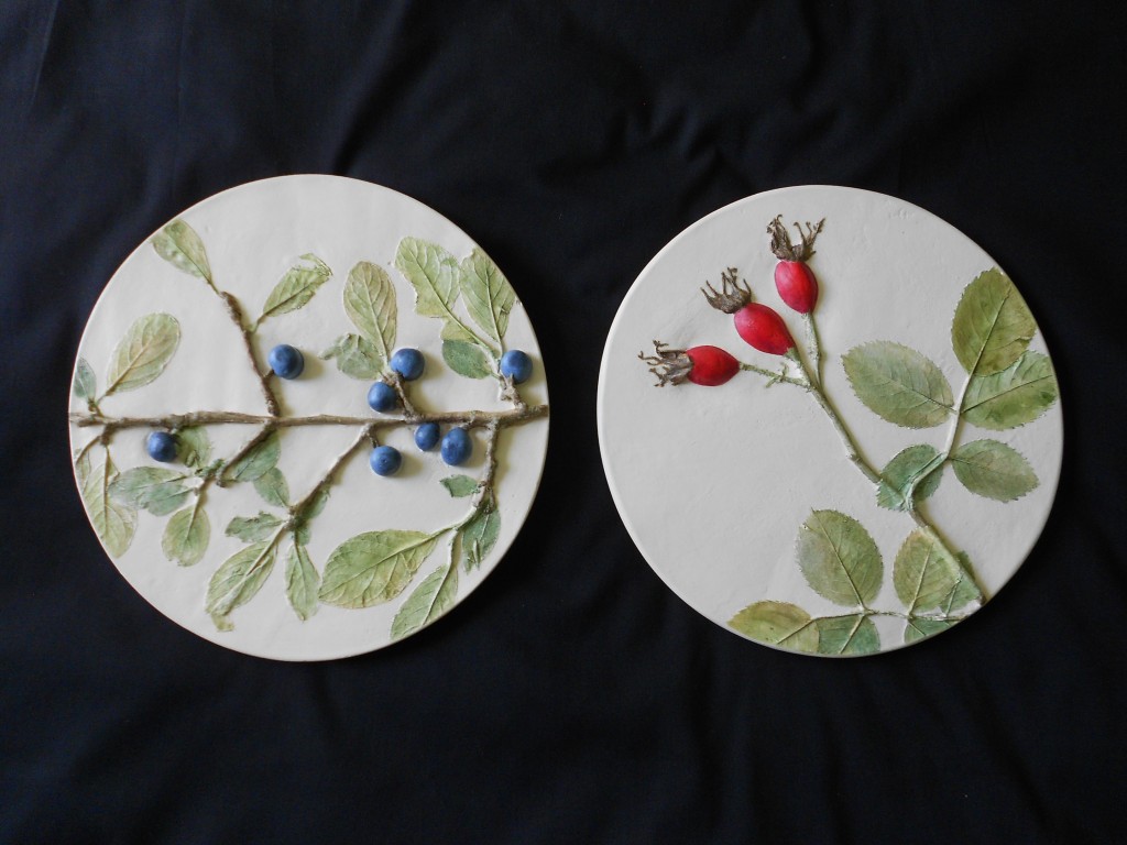 Картина выполнена по оттискам живых растений. Материал, из которого она сделана – гипс.