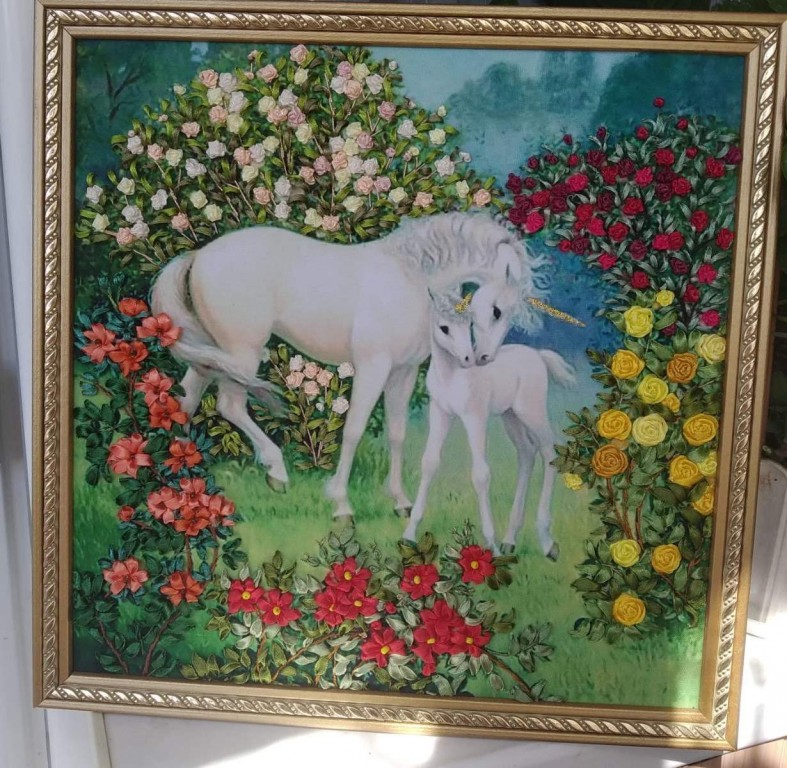 Картина создана атласными лентами, бисером и мулине на качественном принте. Пейзажные картины хорошо вписываются в интерьер любого дома, а также вы можете сделать подарок своим родным и близким.