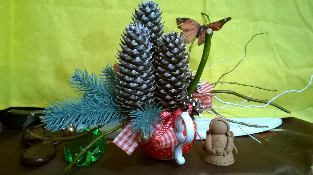 Новогодний и Рождественский декор из фарфора, шишек, лент и ивы матсуданы.
