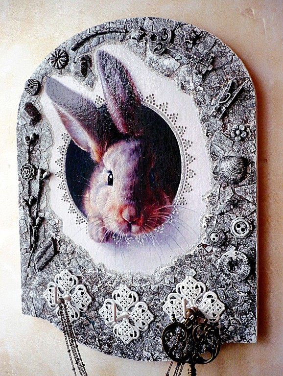 Ключница настенная в прихожую на три крючка с объемными элементами.Оригинальный и полезный предмет интерьера, который будет привлекать внимание ваших гостей сразу при входе в квартиру :)Ключница позволяет хранить ключи всегда в одном месте и экономить время.Также может стать хорошим и нестандартным подарком ко дню рождения или на новоселье.