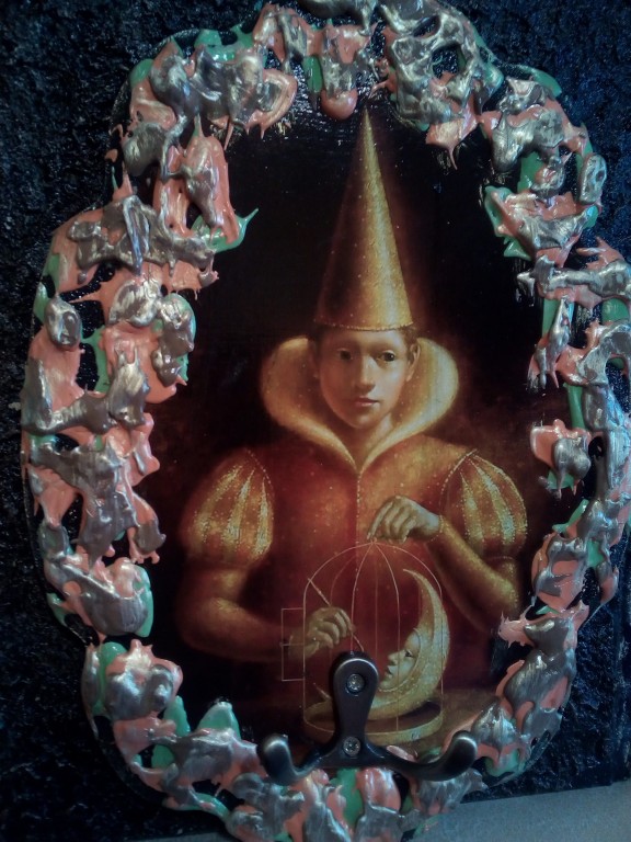 Ключница (вешалка), выполнена из МДФ высокого качества. Основа - лазерная распечатка . Прорисовка акриловыми красками. Использована рельефная штукатурка в специальной технике для обрамления работы.Изделие покрыто 7 слоями акрилового лака. Хорошо обработана сзади. Имеет два крепления . Фурнитура - качественные крючки и подвесы.Эта милая вещица , наполнит ваш дом уютом и радостью.Работа выполнена в одном экземпляре и с большой любовью)22 см на 18 см.