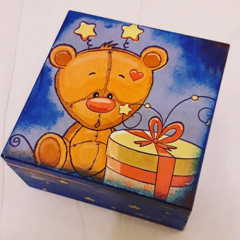 Шкатулка размер 15×15×10см. Яркая шкатулка украсит любой интерьер, особенно хорошо на неё реагируют дети. Можно хранить съедобные продукты, т.к. сделана из дерева и при создании использовались только экологически чистые материалы без запаха. На дополнительные вомросы с радостью отвечу. Пишите.