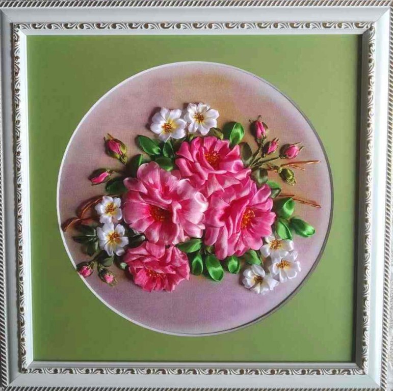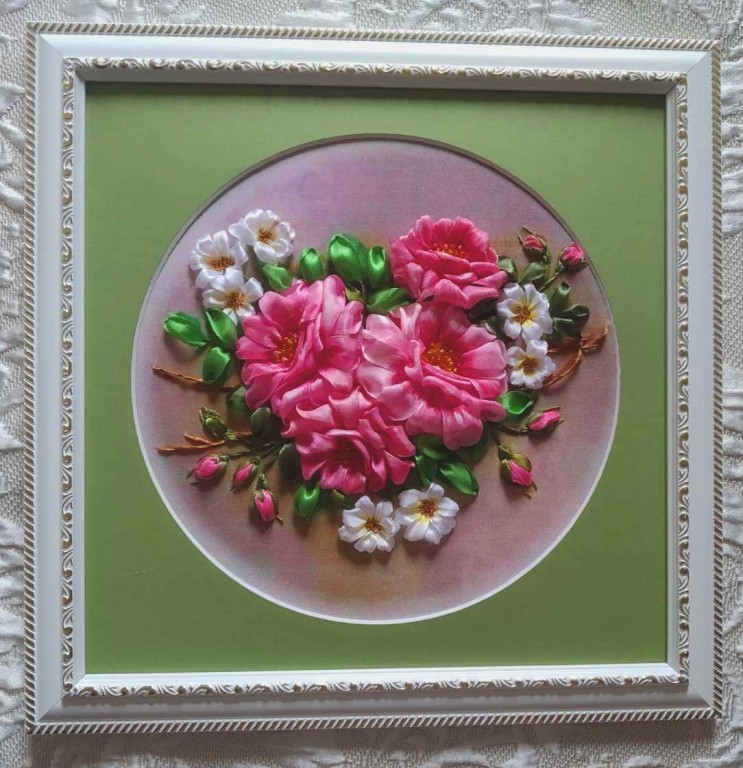 Картина вишита атласними стрічками та бісером на якісному принті, оформлена у паспарту, розмір 35*35см.Чудовий подарунок без жодного приводу, просто так, для душі коханій мамі, сестрі, дружині, подрузі...