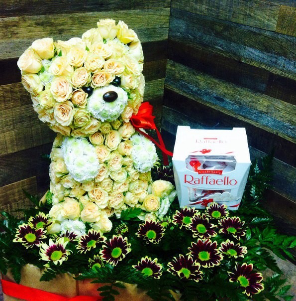 Уникальная композиция из живых цветов для Ваших близких:-долгий срок жизни цветов (около 14 дней)-идеальная форма композиции в виде Мишки, которых любят все или почти все:)-лучшая замена банальному букету цветов-персонализация упаковки В ПОДАРОК от мастерской (коробка с именем получателя)-качественное производство из свежих цветов гарантированно единственной профессиональной мастерской цветочной скульптуры "Люби Дари" в стране и Европе.- цвет на выбор по желанию заказчика может быть практически любым-такого до Вас точно никто не дарил-инструкция по уходу прилагается-открытка с Вашим текстом в подарок-фирменная упаковка и удобный пакет для транспортировки идет в комплекте доставки.
