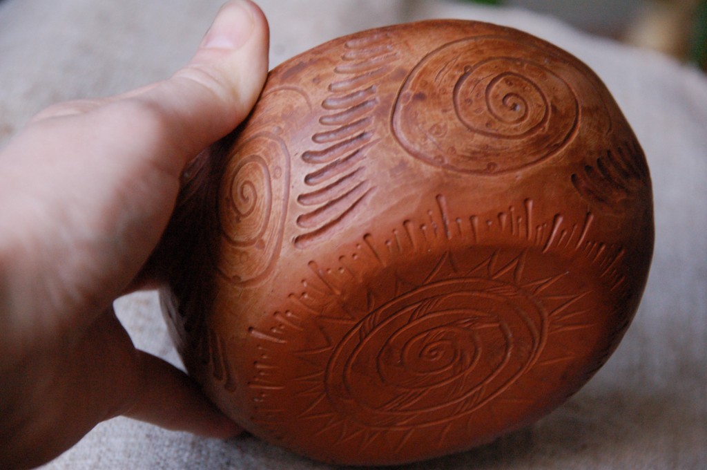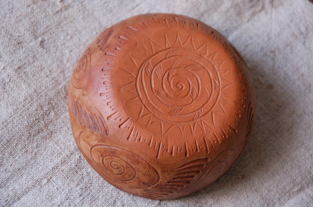 Объем 300 мл. Высота 5 см, диаметр 13 см. Для изготовления использовались только натуральные материалы: красная терракотовая глина, утильный и молочный обжиг, вощение. Ручная работа без использования гончарного круга. Единственный экземпляр в мире. Посуда из глины прекрасно раскрывает вкус блюд и напитков, возможно использование в духовке и микроволновке. Посуда выполняет свои функции, проста в уходе. Возможно изготовление посуды под заказ по индивидуальному эскизу, срок изготовления 3-4 недели.