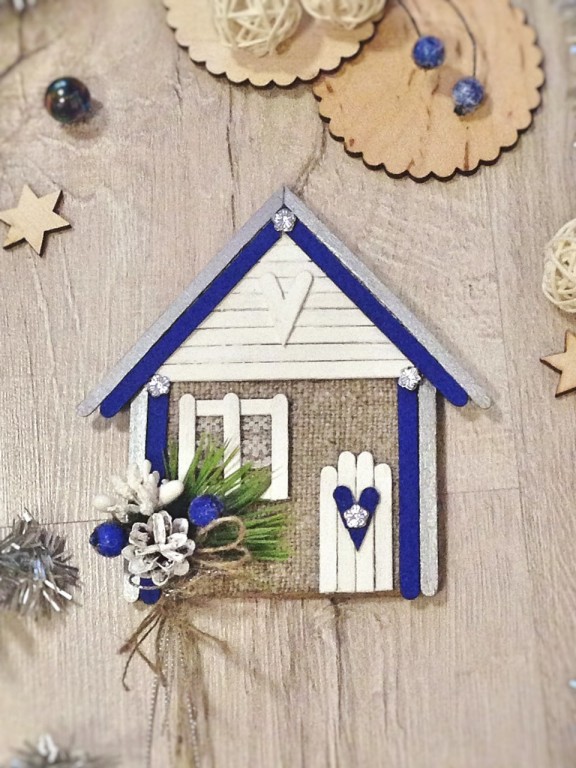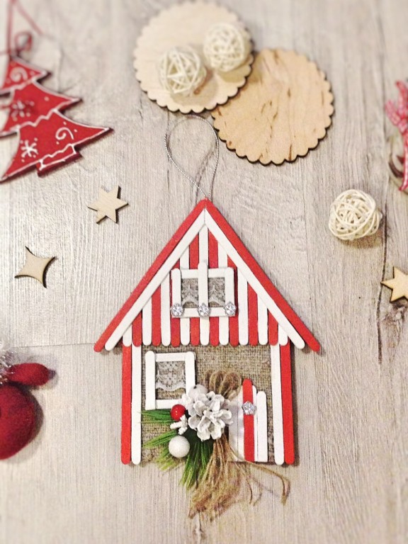Яркие и красочные новогодние домики будут очень красиво смотрететься на Вашей елочке и могут стать элементом декора для украшения дома к празднику. Выполнены из мешковины, джутового шпагата, дерева, кружев, украшены новогодним декором. Возможно изготовить в других цветах.