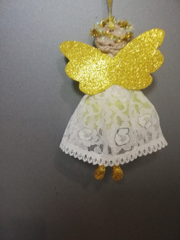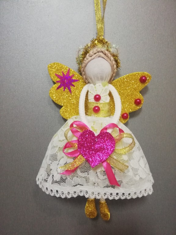 Авторская работа. Отличный вариант для подарка на Рождество и Новый год. Изделие будет долгие годы дарить праздничное настроение и создавать уютную атмосферу в доме. Состав: кружево, лента,, фоамиран. Высота 20см.