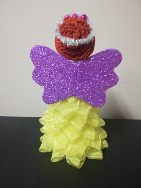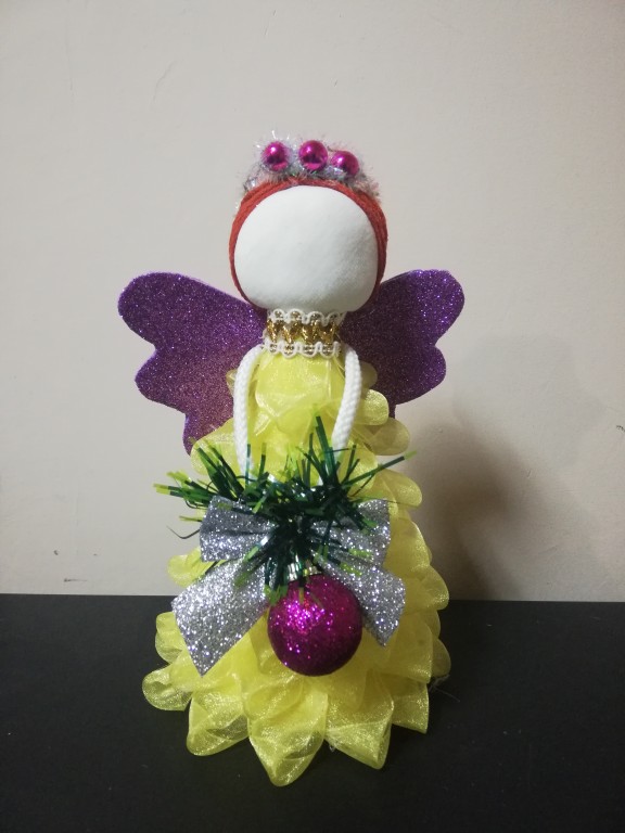 Авторская работа. Отличный вариант для подарка на Рождество и Новый год. Изделие будет долгие годы дарить праздничное настроение и создавать уютную атмосферу в доме. Состав: кружево, лента, кукла, фетр, картон. Высота 19см.