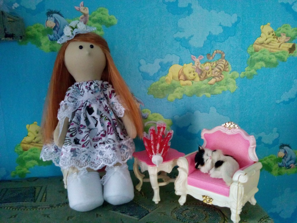 Куколка станет оригинальными даже эксклюзивным подарком!! Рост 40 см,пошита с использованием гипоаллергенных материалов. Имеет добрый и покладистый характер!!