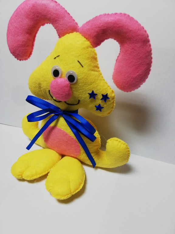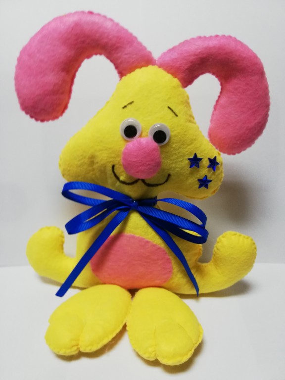 Игрушка выполнена из фетра. наполнитель-синтепон. Рекомендована сухая чистка.Высота 25см Яркая мягкая зая из фетра станет отличным подарком для детей и взрослых.