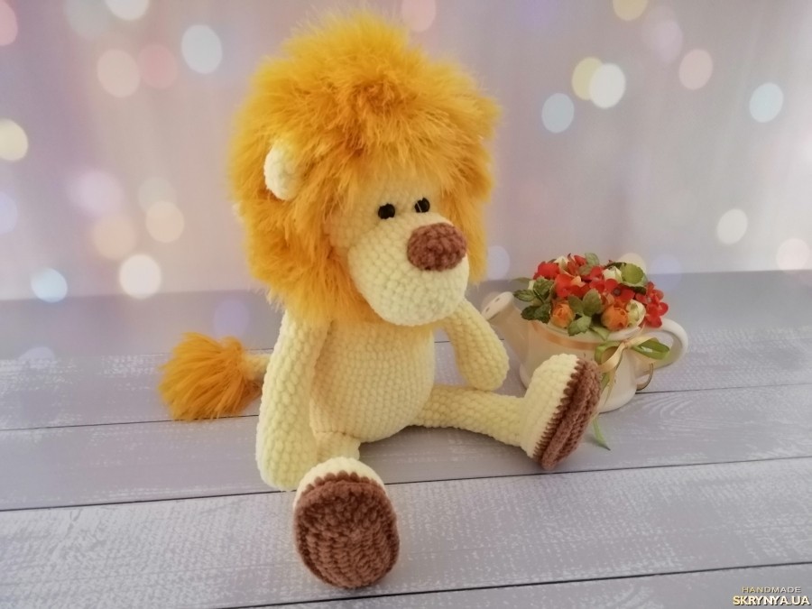 М′яка іграшка, зв′ язана гачком з плюшевої пряжі. Висота сидячи 26см, в повний зріст 36см.