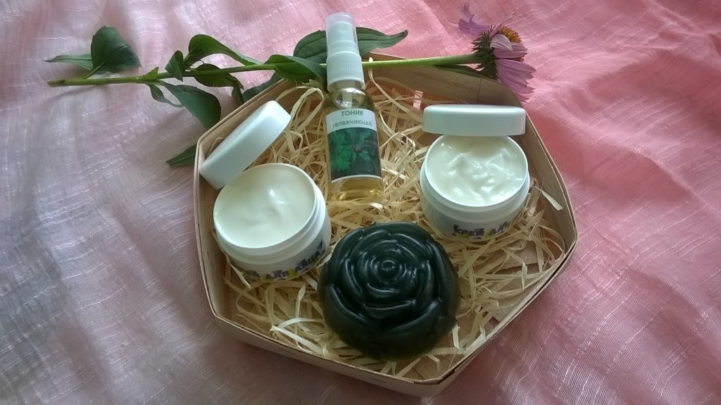 Крем для рук - Состав: Масла кокоса, пальмы, пшеничных ростков, касторовое, натуральный растительный эмульгатор пшеничный воск. Увлажнени–молочная кислота,экстракты огурца и ламинарии,софора,протеины злаковых гидролизатов,витамины А,В2,С,D и Е.