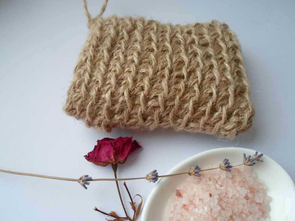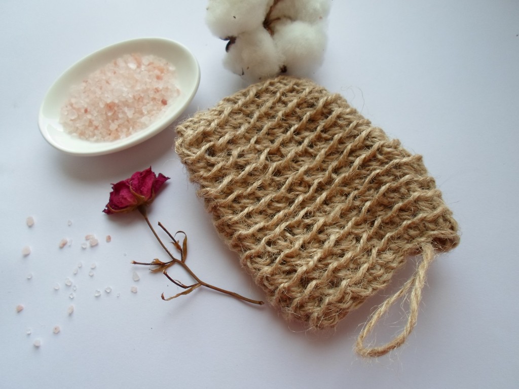 В мочалке есть кармашек для мыла. Эфирное масло для мыла выбираете Вы: лаванда, иланг – иланг, пачули, эвкалипт, мята с лимоном,имбирь.