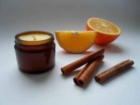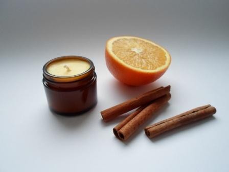 Состав:соевый воск,масло ши,зародышей пшеницы,эфирное масло апельсина,корицы.
