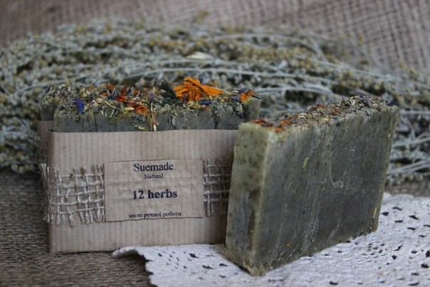 Для всех типов кожи! Лечебное мыло!!! Состав: сварено на отваре 12 трав (чабрец, тысячелистник, хвощ, полынь, лаванда, мать-и-мачеха, подорожник, мята, мелиса, розмарин, шалфей, зверобой), масло оливки 85%, ши (карите), касторка, экстракт календулы и ромашки, эфирные масла лаванды, полыни, мелиссы, мяты.
