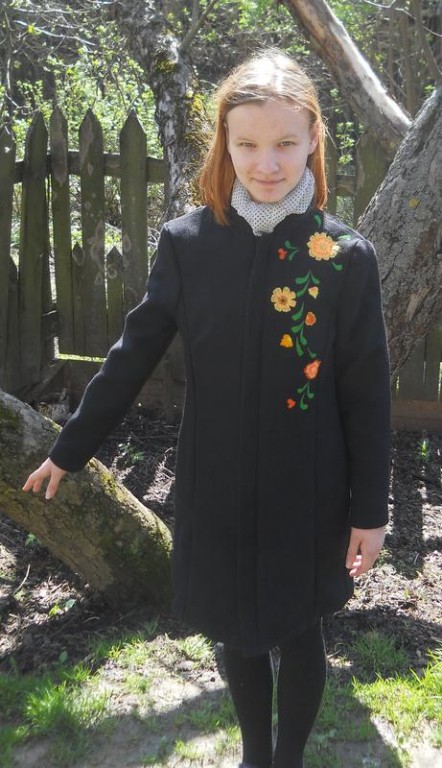 Тонкий драп + подкладка. Полностью ручная работа. Вышивка гладью, ручная. Размер 42.
