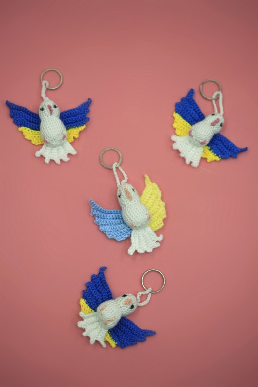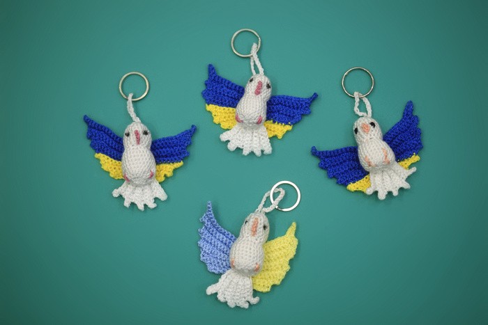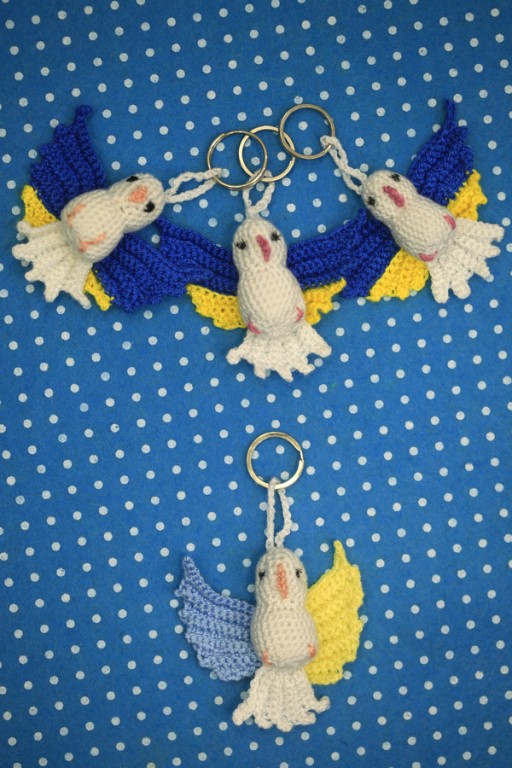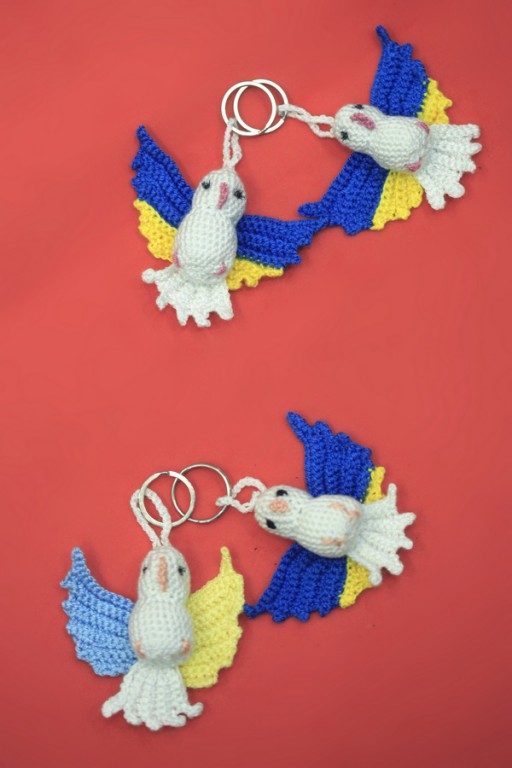 Брелок для рюкзачка или сумочки голубка связан крючком из акриловой пряжи. Размер - 6х5 см. Можно использовать как игрушку для елки. Ручная работа.