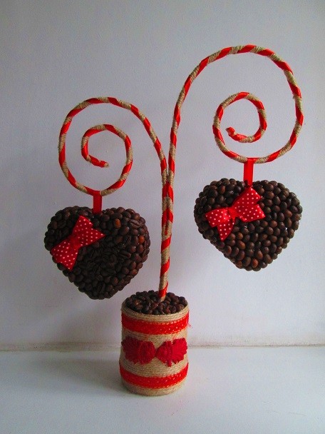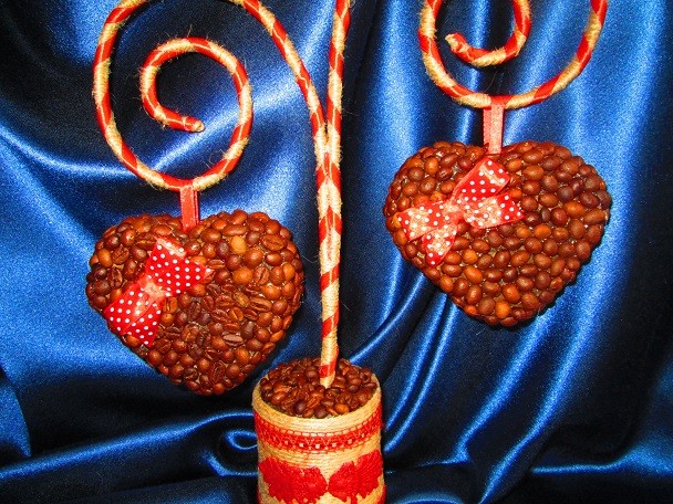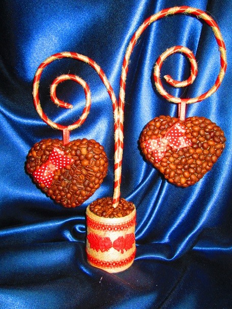 Іопиарий – валентинка ′Два сердца′, кофейный подарок., Handmade.Топиарий ― валентинка, подаренный второй половинке в День Святого Валентина выразит Ваши чувства как нельзя лучше!!!