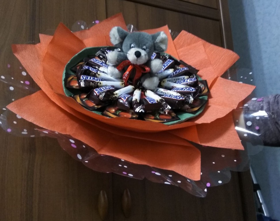 Чайно-конфетный букет с мышкой