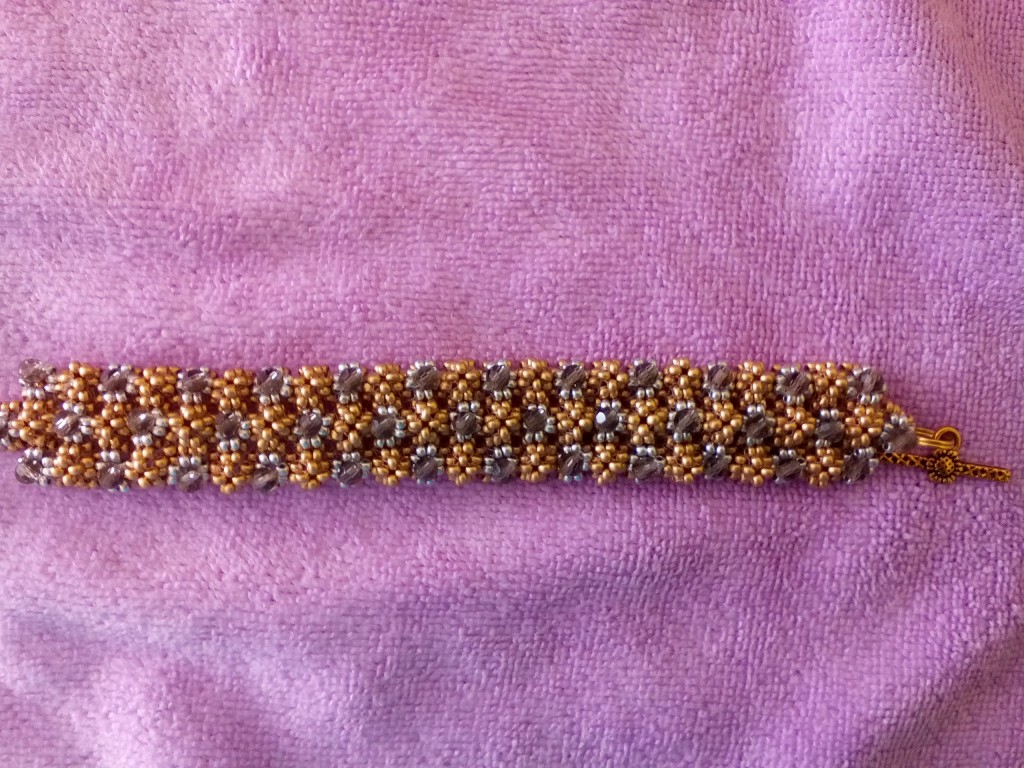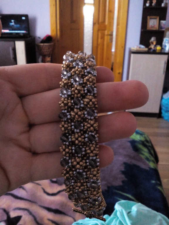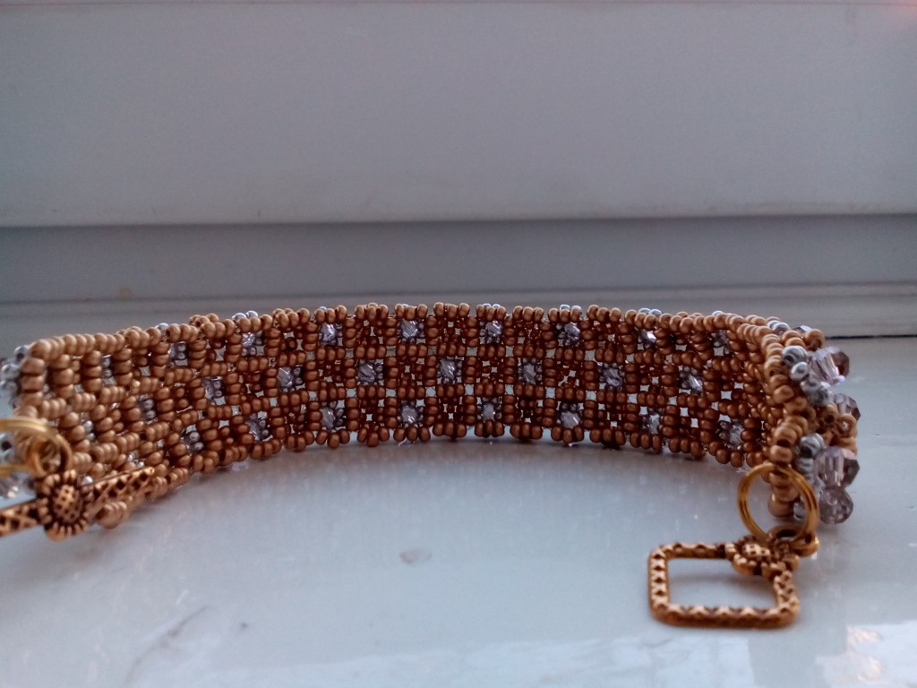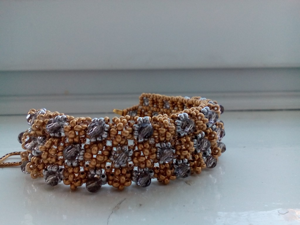 Баслет сплетений на бісерній сітці вплетені 4 мм хрустальні бусинки та бісер плетений у вигляді шишки дуже елегантно виглядає є різні кольори.