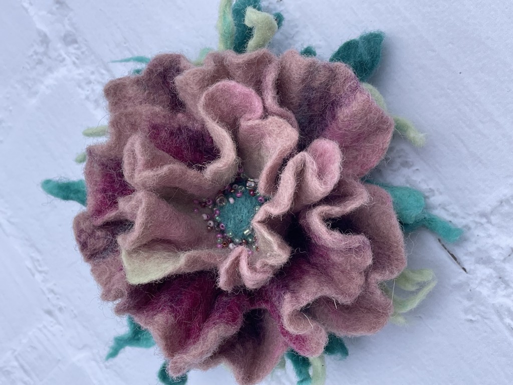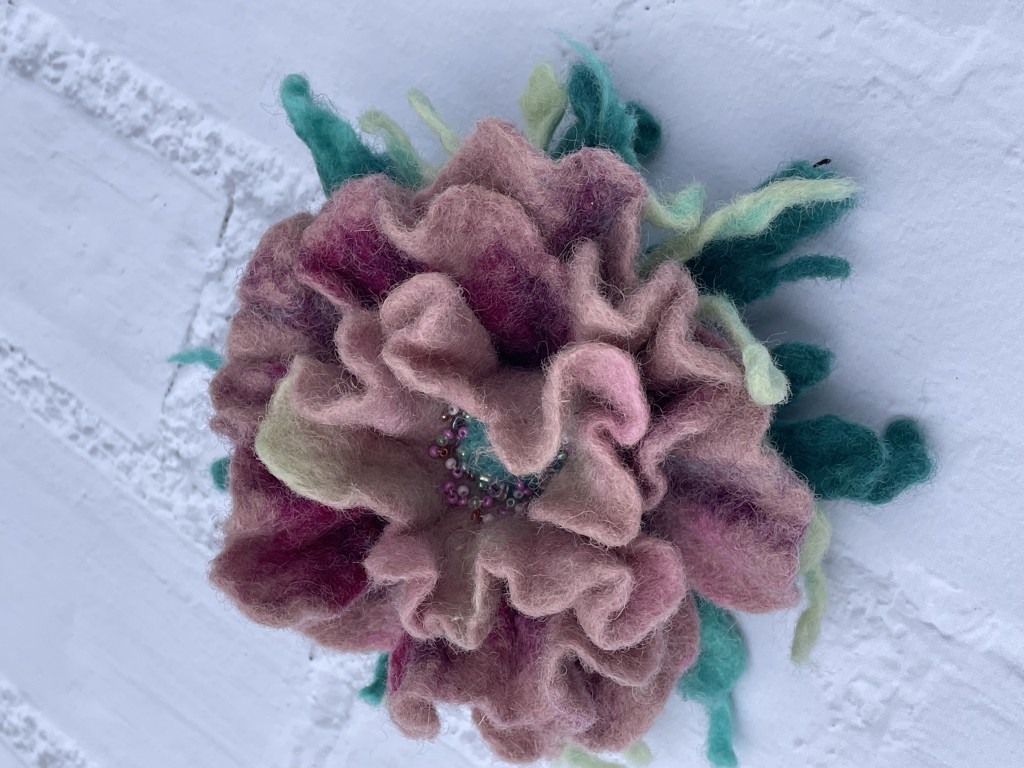 Брошка виготовлена з вовни методом сухого валяння.