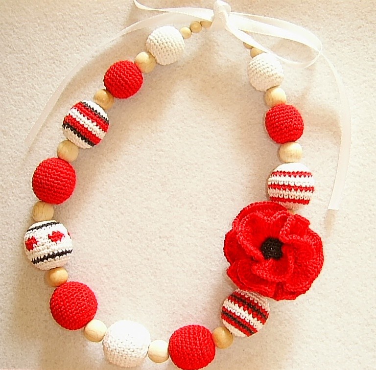 Бусы "Мак" выполнены из обвязаных деревянных бусин хлопковыми нитками, продета атласная ленточка, с помощью которой можно регулировать длину.
