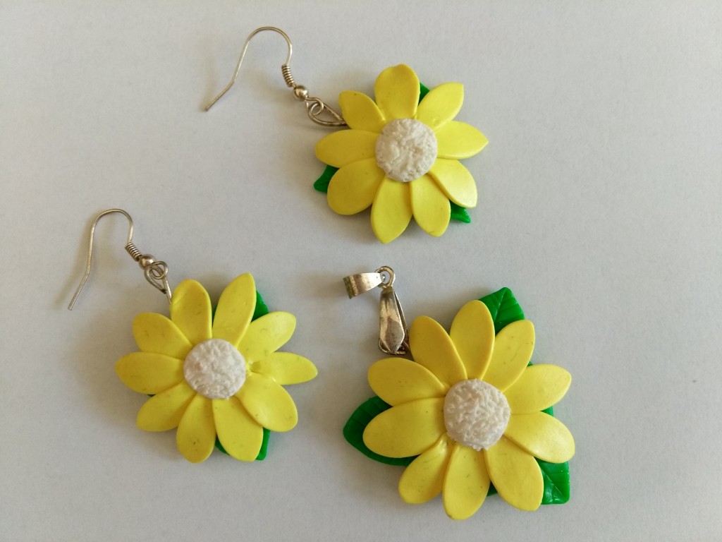 Комплект украшений ручной работы из полимерной глины. Состоит из кулона и сережек.