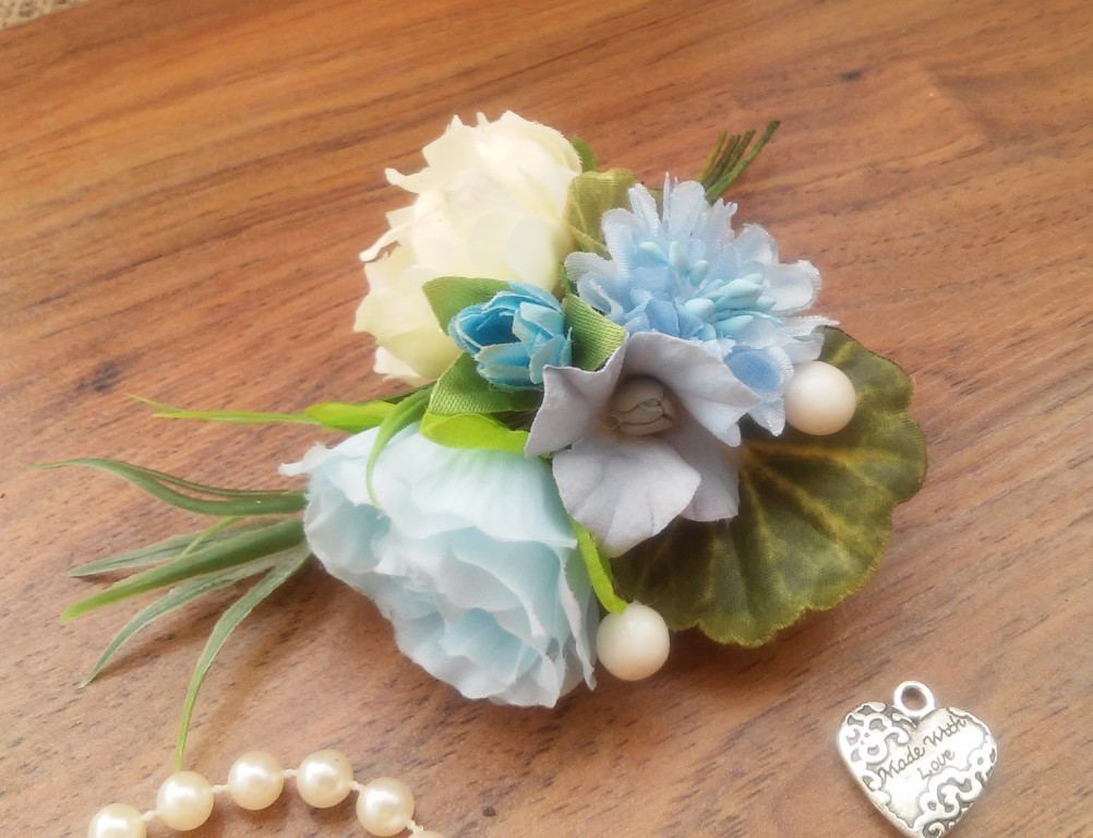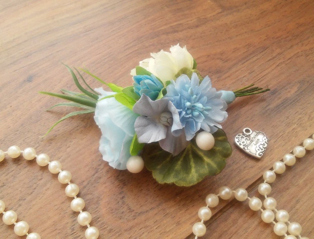 Бесспорный тренд последних лет - концептуальные свадьбы, стилизованные в разных цветах. Свадьба, декорированная в голубых тонах, олицетворяет небесную свободу, спокойствие моря и чистоту воздуха. Этот цвет - свежий, легкий и нежный, является символом жизни, знаменует постоянство и доверие. Важные качества для долгой семейной жизни, не правда ли? Если ваш выбор Blue Wedding, тогда эти нежные букетики станут прекрасными аксессуарами для ваших помощников на свадьбе - свидетелей и помогут выделить их из числа гостей. Комплект состоит из 2-х предметов - бутоньерки и цветочного браслета. Выполнен из искусственных цветов хорошего качества, искусственной зелени, декоративных флористических добавок. Цена указана за 1 комплект. Размер изделий: бутоньерка - высота с ножкой 11 см, ширина 7,5 см, браслет - длина 8 см, высота 7 см.