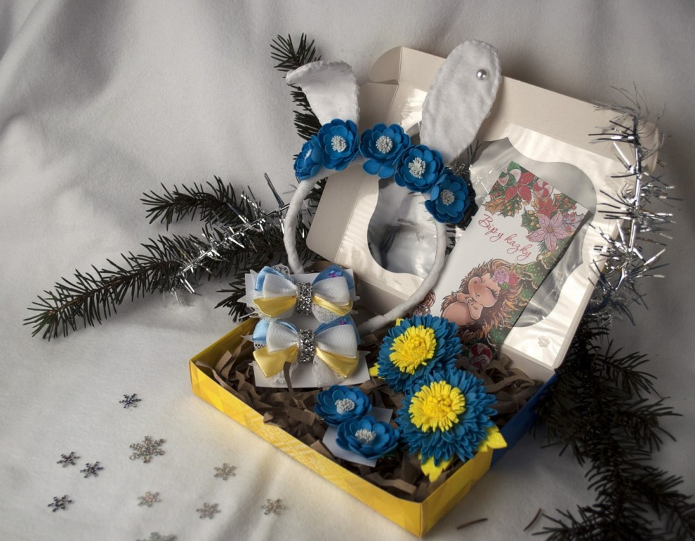 В наборі: обруч, 4 резиночки, 2 заколки.