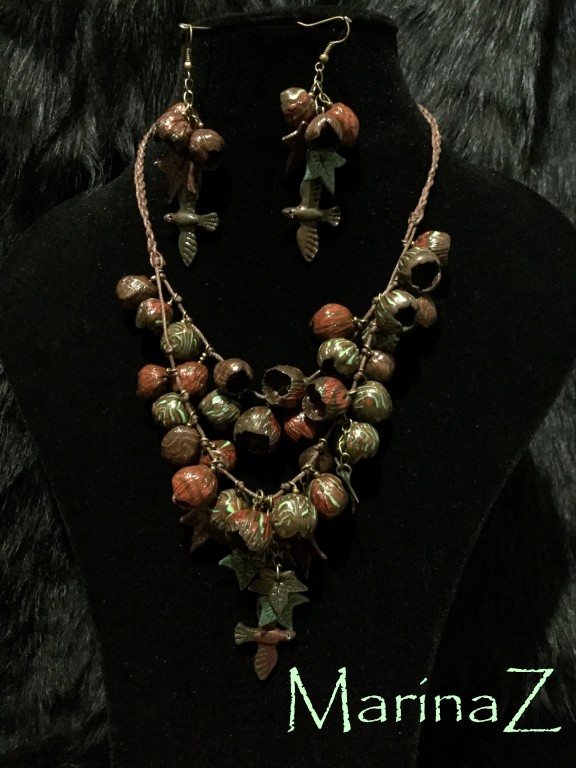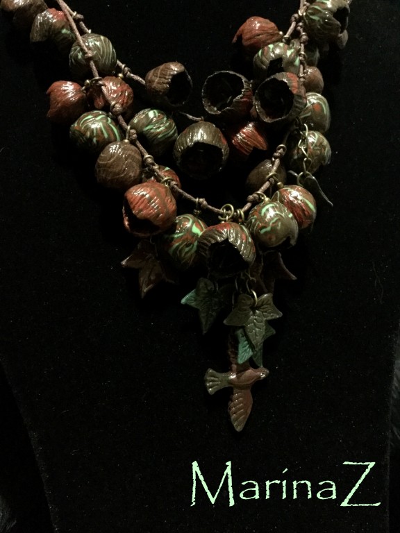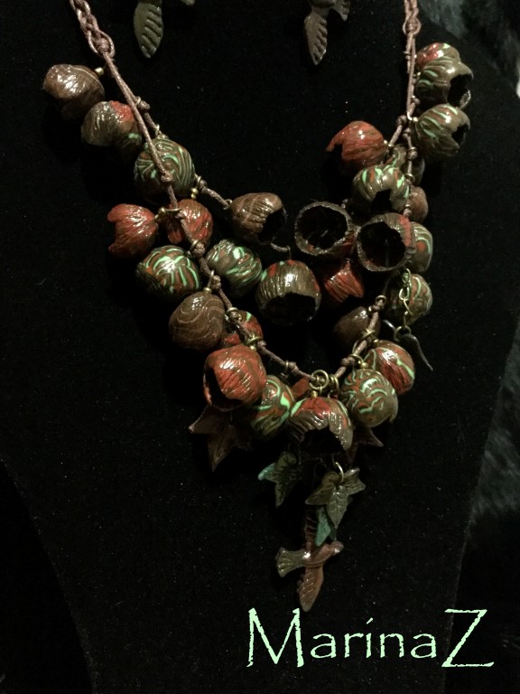 Из полимерной глины, вощеного шнура и фурнитуры под бронзу. Только в единственном экземпляре. (Цвет изделия может немного отличаться от фото, так как это зависит от цветопередачи Вашего монитора, а также преломления цвета при фотосъемке.) Длина малого шнура 44 см, длина большого шнура 55 см (по желанию можно удлинить).