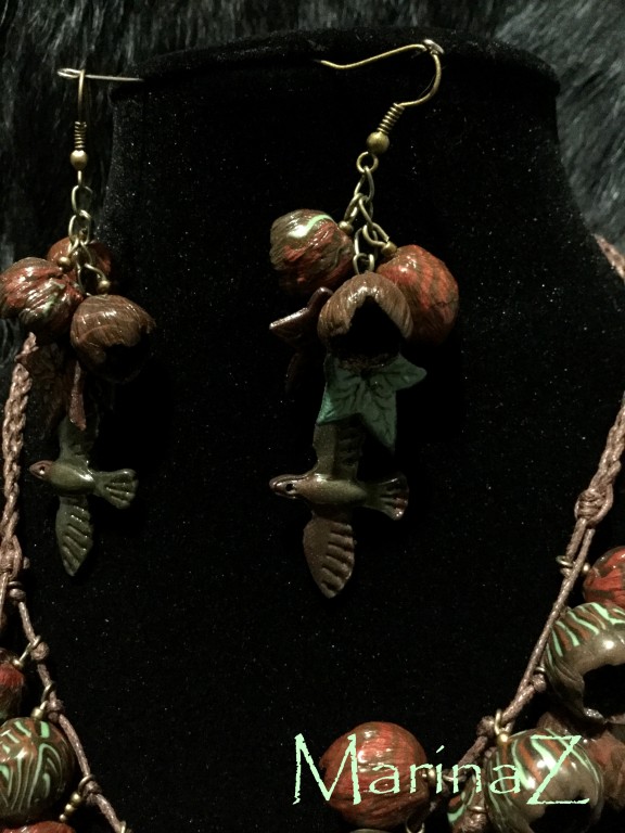 вощеный шнур, полимерная глина, фурнитура под бронзу