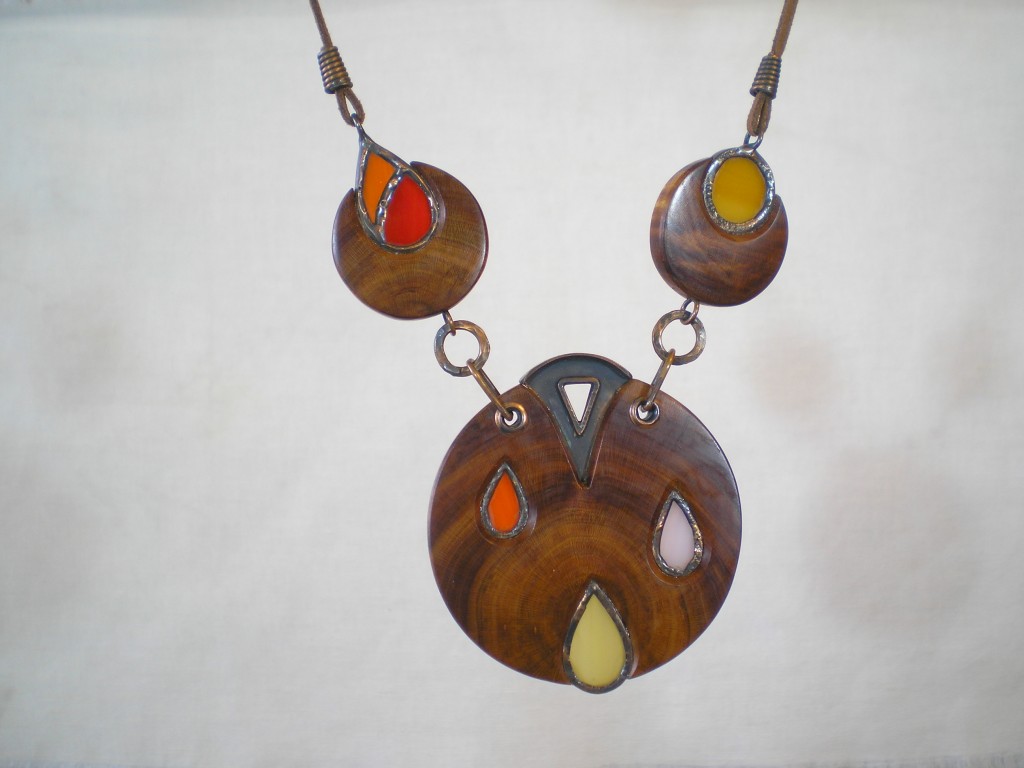 Украшение ручной работы . Изготовлено из дерева фруктовых пород, меди, цветного стекла.