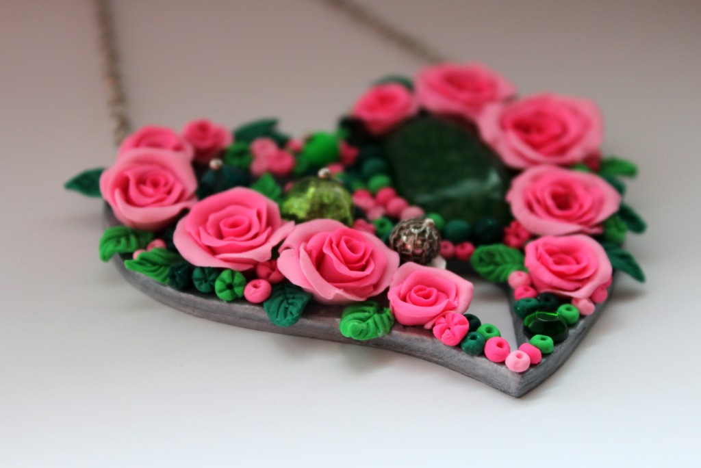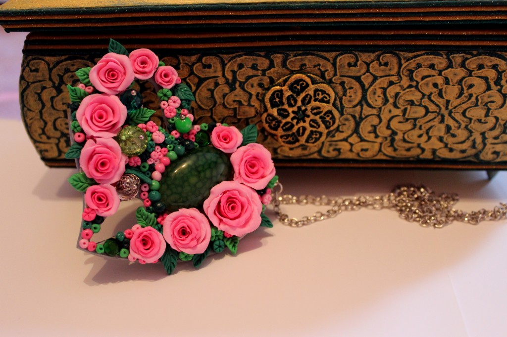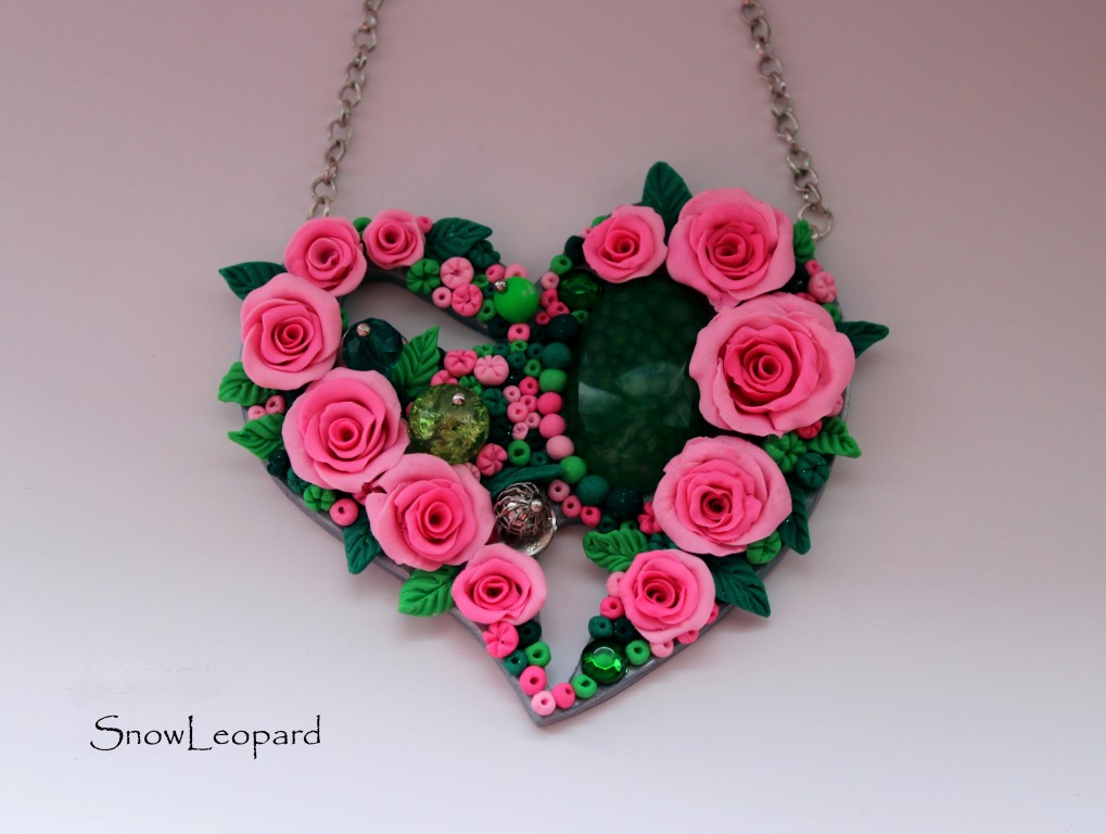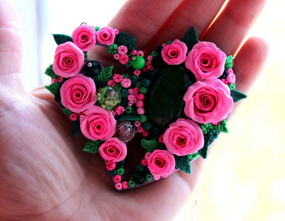 Кулон в форме сердца с натуральным камнем - зеленый агат (вены дракона). Выполнен из полимерной глины, дополненный металлическими и стеклянными бусинками. Изготовлен на заказ. Точный повтор невозможен.