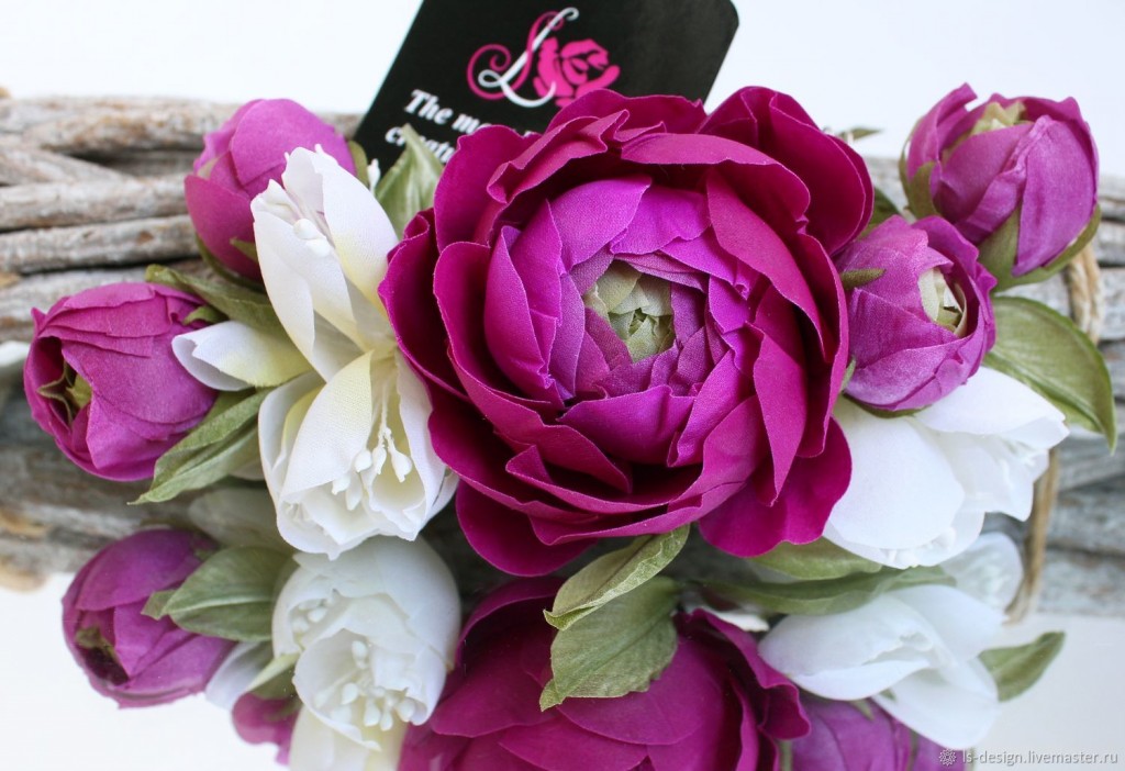 Цветы созданы из натурального шелка. Крепление - гребень.