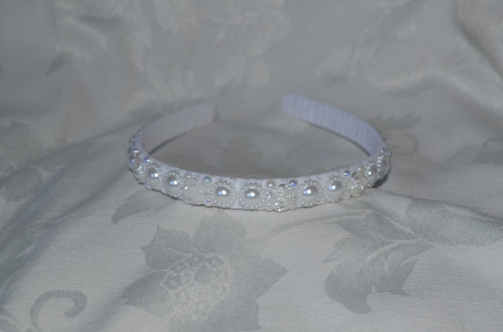 Модный, нежный ободок из бусин и полубусин, прекрасное украшение для любого торжества.