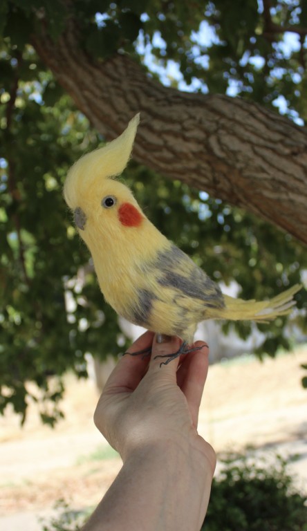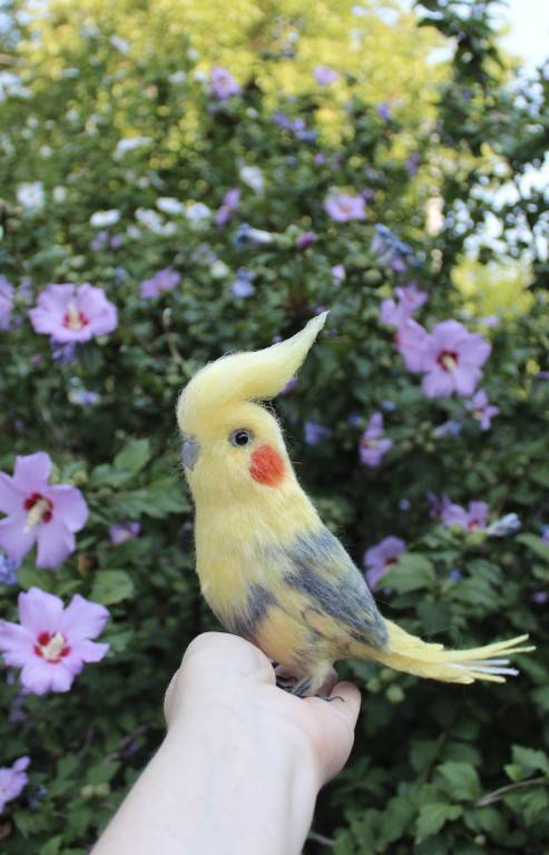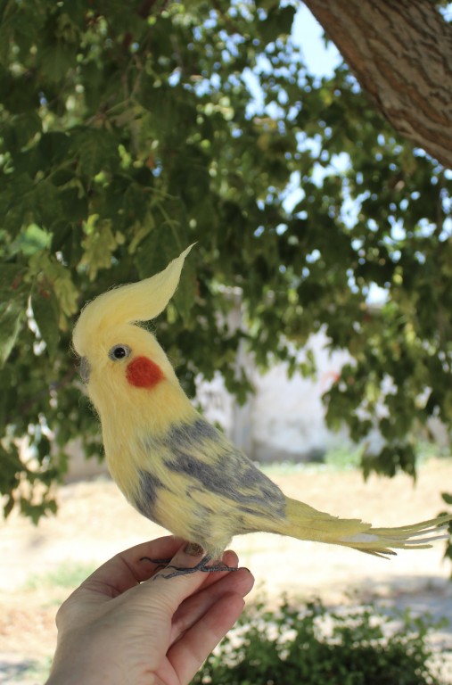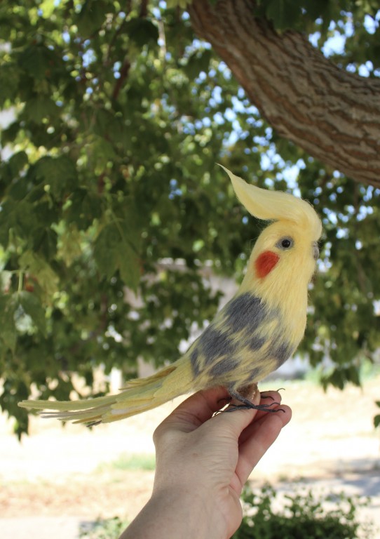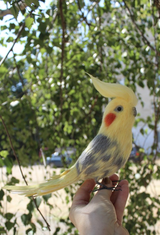 Корелла папуга валяна іграшка з вовни інтерєрна пташка. Висота 16 см, длина 25 см. Клювик ручної лепки та розпису. Лапки на каркасі, кожне пірʼячко зроблено окремо. Блискучий папужка дуже яскравий та красивий. Войлочна пташечка ручної роботи. Зроблен з любовʼю. Чудовий подарунок як дорослому так і дитині. Гарна прикраса вашого інтерʼєру на довгі роки.