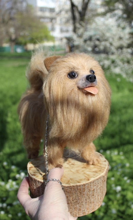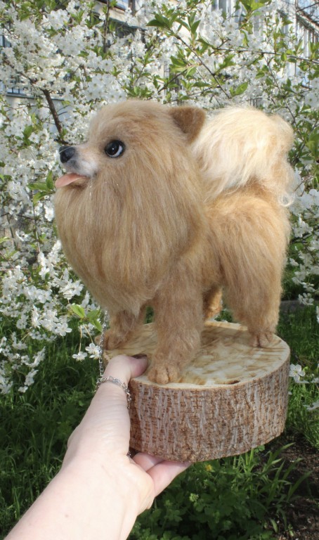 Шпиц собачка валяна іграшка з шерсті інтерєрна. Шорсточка дуже блискуча та приємна на дотик , на каркасі, висота 21 см, длина 23 см . Красунчик песик войлочний хендмєйд. Шерстяна валяна скульптура з вовни буде чудовою прикрасою інтерʼєру .