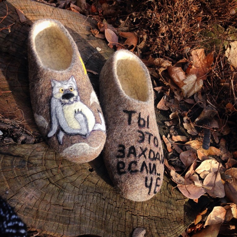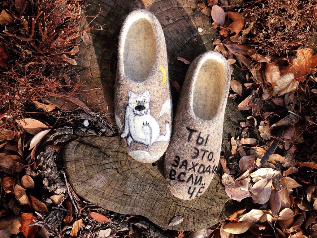 Сваляны из 100% натуральной неокрашенной шерсти Рисунок набит шерстью, без использования красок. Валяные тапочки - прекрасный подарок Вам и Вашим близким. Позаботьтесь заранее о подарках к дню рождения или к Новому году. Тапочки из шерсти - самая здоровая обувь для наших ножек. В них очень комфортно. Обутые на босу ногу, они способствуют расширению кровеносных сосудов, улучшают кровообращение в ногах, оказывают легкий массажный эффект. Очень теплые шерстяные тапочки, рисунок и размер можно сделать любой.Больше моих работ на https://vk.com/id306768076.