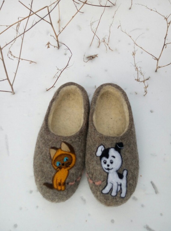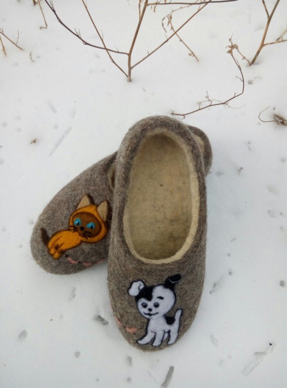 Валяные тапочки ручной работы. Сделаны из натуральной неокрашенной овечьей шерсти. Тапочки валяные удобные, тёплые, лёгкие, красивые и стильные. Тапочки носятся в любое время года, в них не жарко летом и не холодно зимой. Войлочные тапочки обладают лечебным эффектом: улучшают кровообращение, снимают общее напряжение, усталость и тяжесть в ногах. Украсить по желанию. Валяные домашние тапочки станут прекрасным и полезным подарком себе и близким.