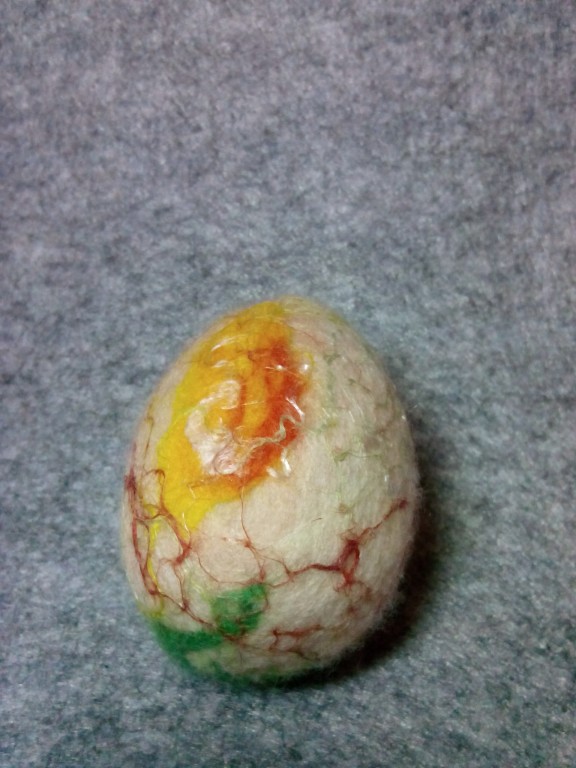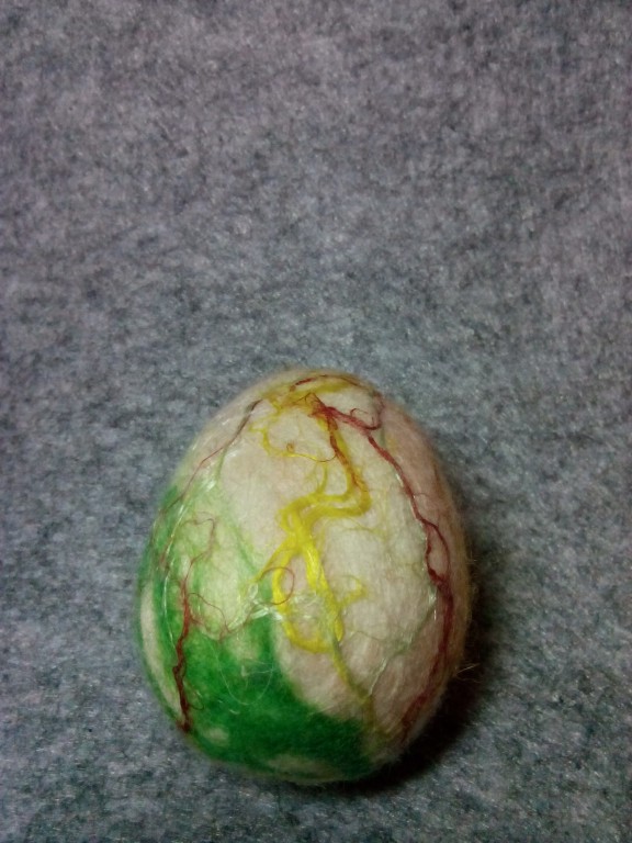 Писанка виконана в техніці мокрого валяння з вовни, льону, шовку, віскози на пластиковому яйці. Стане яскравим та теплим дарунком на Великдень. Можливе виконання у різних кольорових варіаціях.