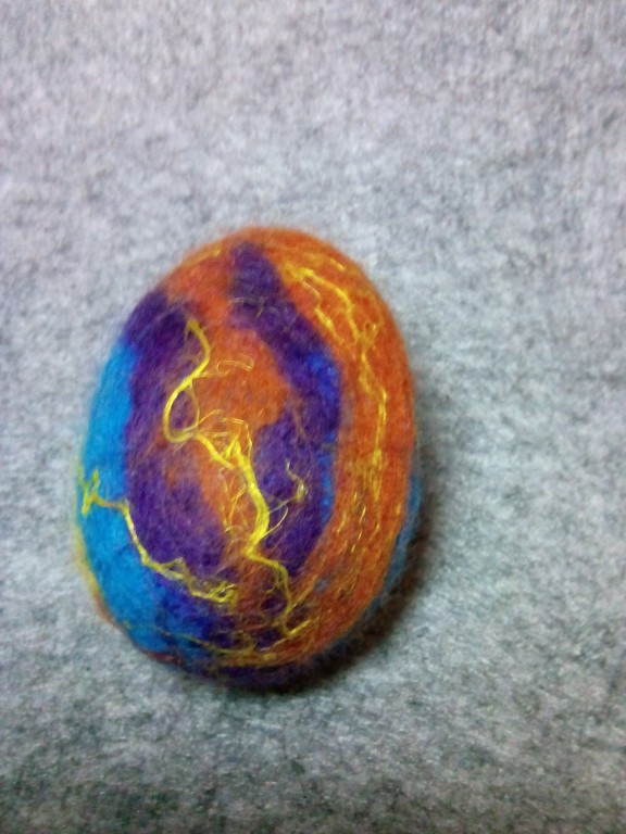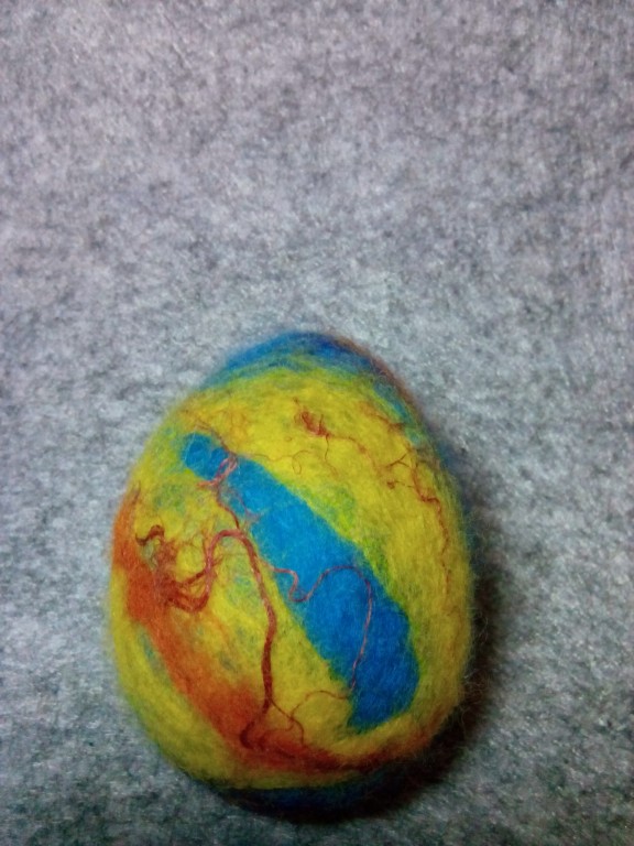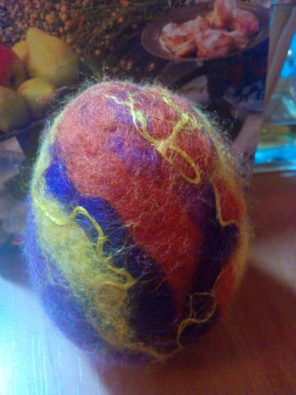 Писанка виконана в техніці мокрого валяння з вовни, льону, шовку, віскози на пластиковому яйці. Стане яскравим та теплим дарунком на Великдень. Можливе виконання у різних кольорових варіаціях.