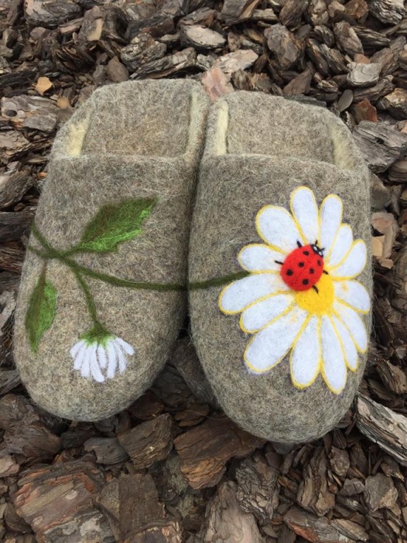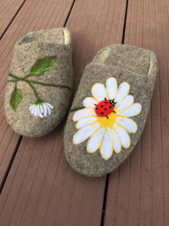 Валяные тапочки ручной работы. Сделаны из натуральной неокрашенной овечьей шерсти. Тапочки валяные удобные, тёплые, лёгкие, красивые и стильные. Тапочки носятся в любое время года, в них не жарко летом и не холодно зимой. Войлочные тапочки обладают лечебным эффектом: улучшают кровообращение, снимают общее напряжение, усталость и тяжесть в ногах. Украсить по желанию. Валяные домашние тапочки станут прекрасным и полезным подарком себе и близким. www.instagram.com/ukrainaira/ www.instagram.com/_mrs.pottss www.facebook.com/ukrainaira ukrainaira65@gmail.com.