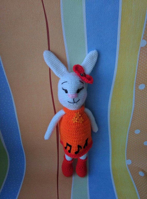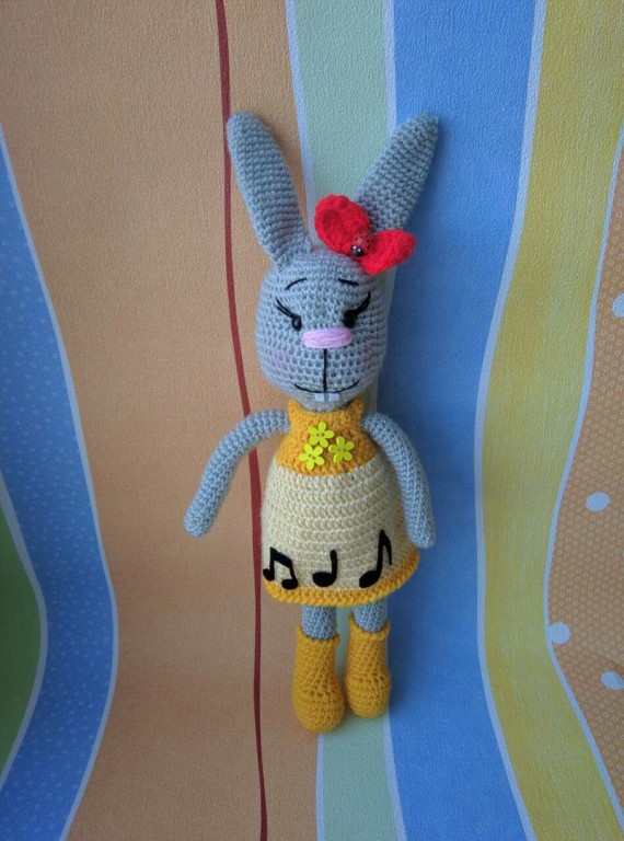 Зайки высотой 30 см. Вязаные крючком из пряжи акрил премиум. Платье снимается выполнено из двух цветов пряжи, как аксессуар деревянные бусины . Наполнитель гипоаллергенный холлофайбер. Пластиковые глазки надежно закреплены. Тонированы сухой пастелью. Бантик не снимается.