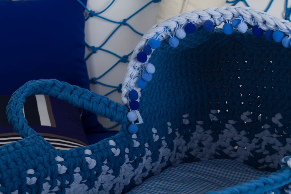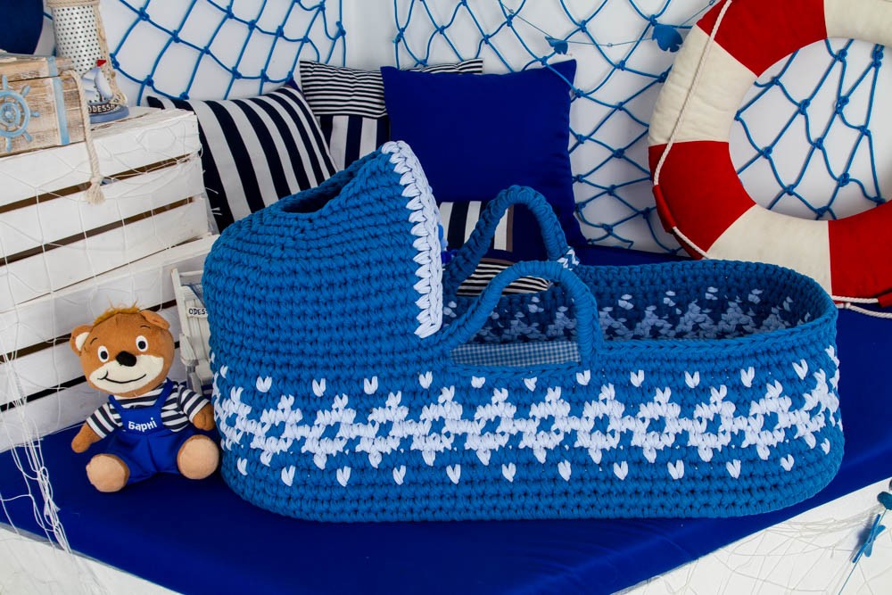 Детская люлька-переноска Страна чудес выполнена из первичной трикотажной пряжи с дном из фанеры, благодаря чему отлично держит форму и не провисает при переносе малыша. Не вызывает аллергии, т.к. пряжа изготовлена из 100%-го хлопка.