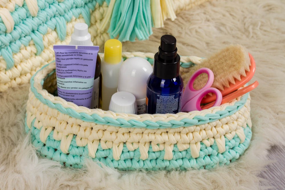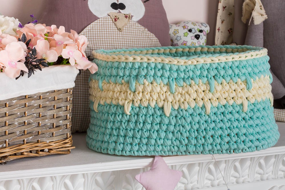 Комплект Волшебный дом выполнен из первичной трикотажной пряжи с дном из фанеры, благодаря чему изделия отлично держат форму. Трикотажная пряжа изготовлена из 100%-го хлопка, изделия не будут вызывать аллергию у малыша.