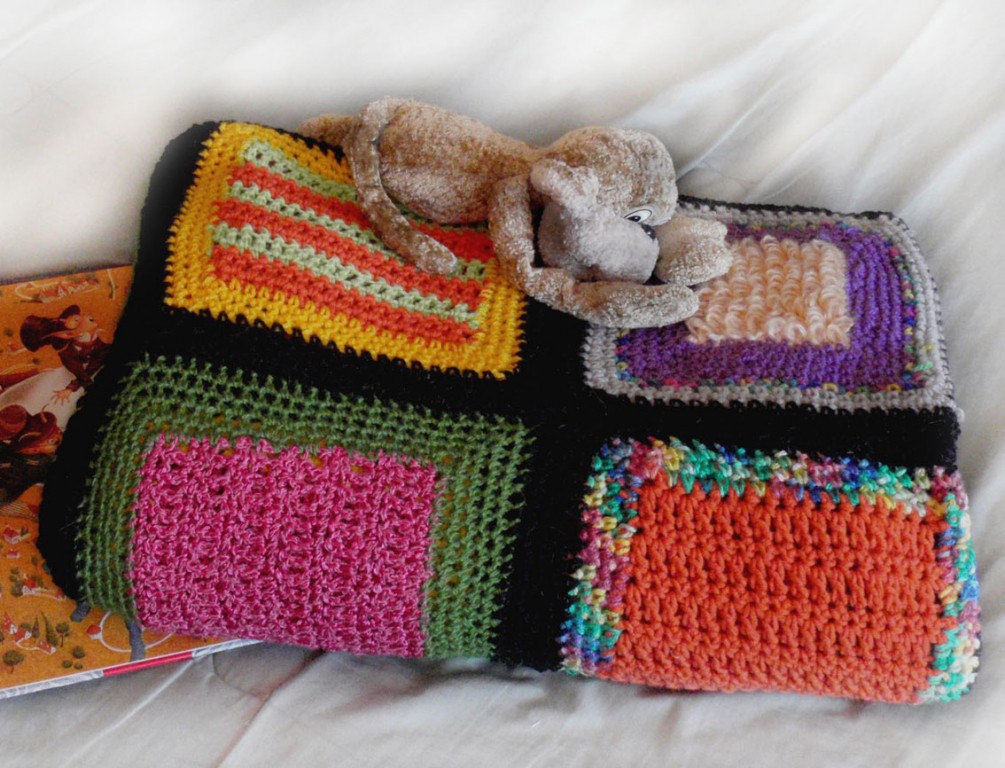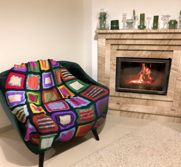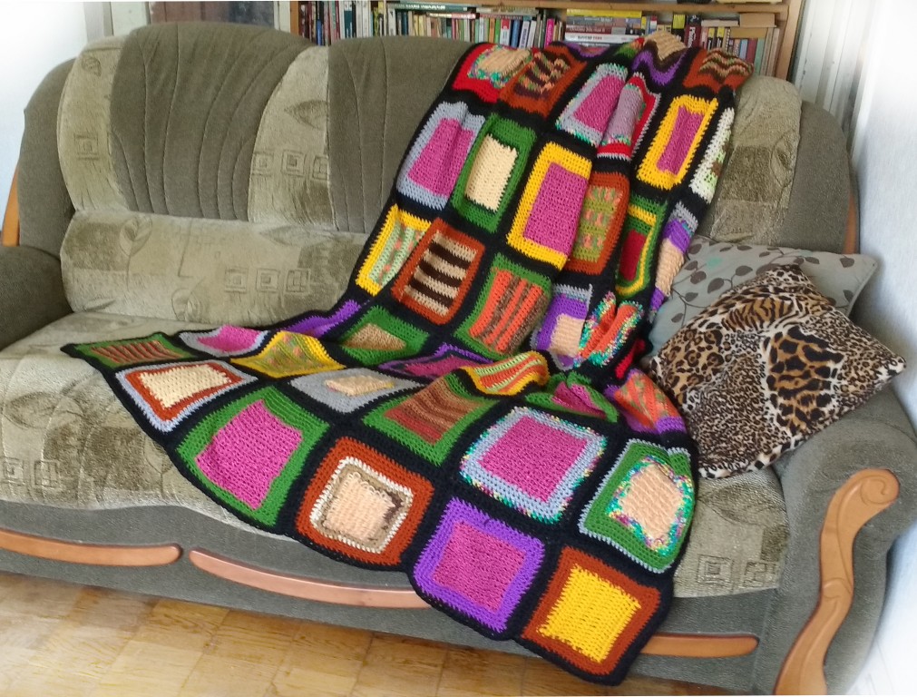 Легкий, теплый плед ручной вязки в яркой цветовой гамме сделает радостнее Вашу жизнь.